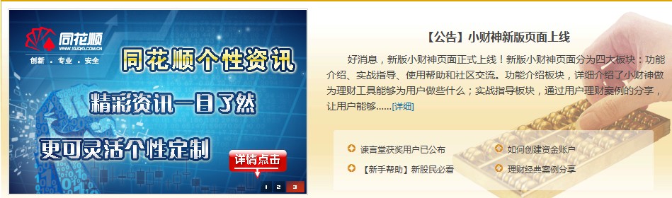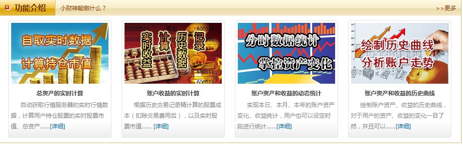 新版小财神网页和和之前的相比,内容更丰富,更具互动性。主要增加调整了一下版块: