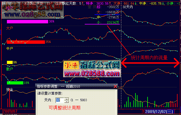 送上大智慧超大单公式,一目了然,统计方便,设有持仓统计,调整天数参数可改变统计天数内总流量。没未来没有其他条件能用二年,喜欢就下。