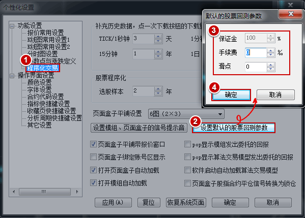 A.如下图在个性化设置中统一设置股票手续费、滑点等通用参数。