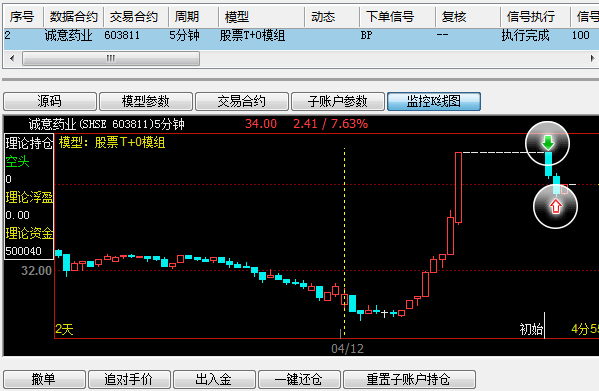 第三步:根据主图回测调整好策略后,右键->【装入到程序化模组后台运行】,将策略带入到股票T+0运行模组自动下单;