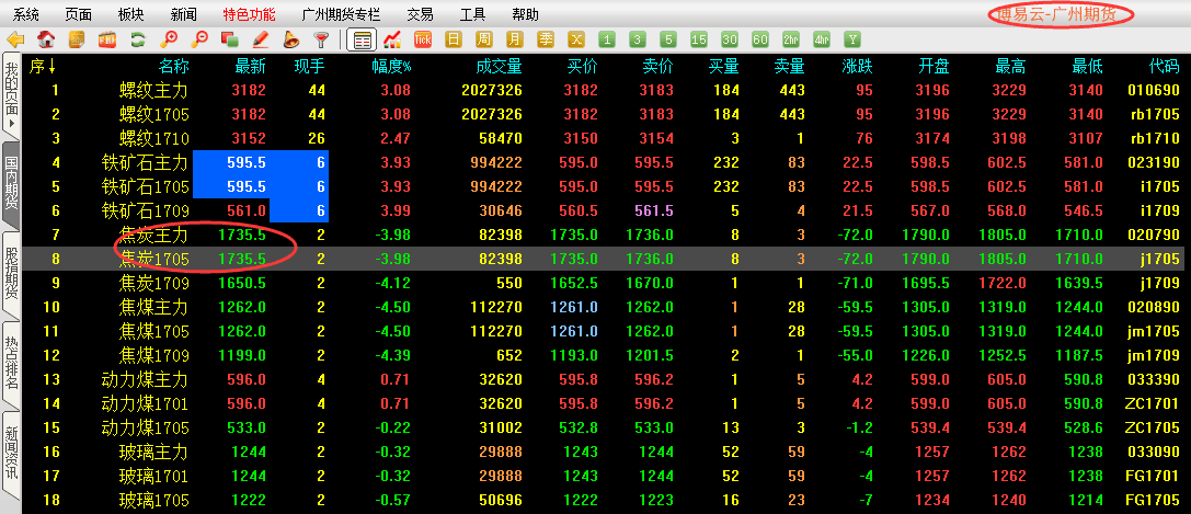 为什么两个版本的焦炭主力合约还不一样,一个是1701,一个是1705?