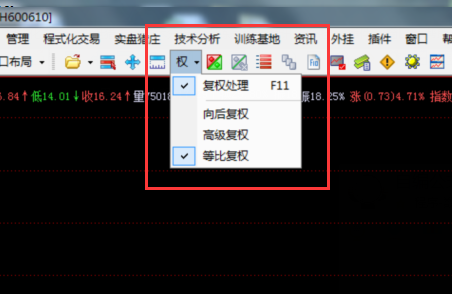 请问您在飞狐交易师里选择的复权方式是哪一种?向后复权?等比复权?高级复权?