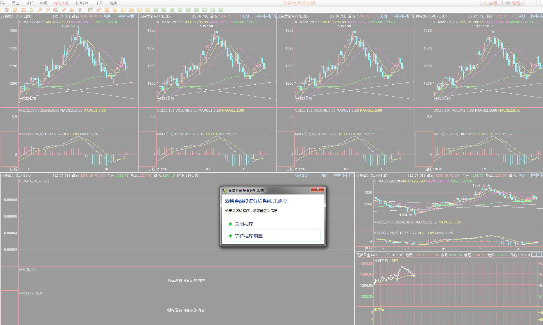 现货黄金5分钟周期看不了,一点进去,就出现:指标没有显示的内容,再点就直接程序死机。请问要哪何解决?
