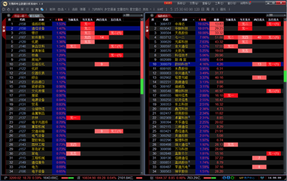 KT交易师的“领涨龙头”功能,将行业龙头和选定行业的个股龙头分别陈列在页面的左右两列。