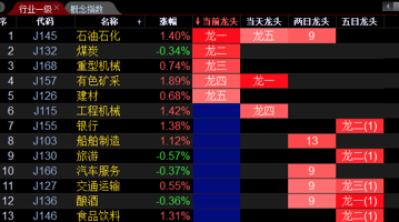 当天龙头的龙一~龙五分别对应当天涨幅排名前五的行业或者个股。
