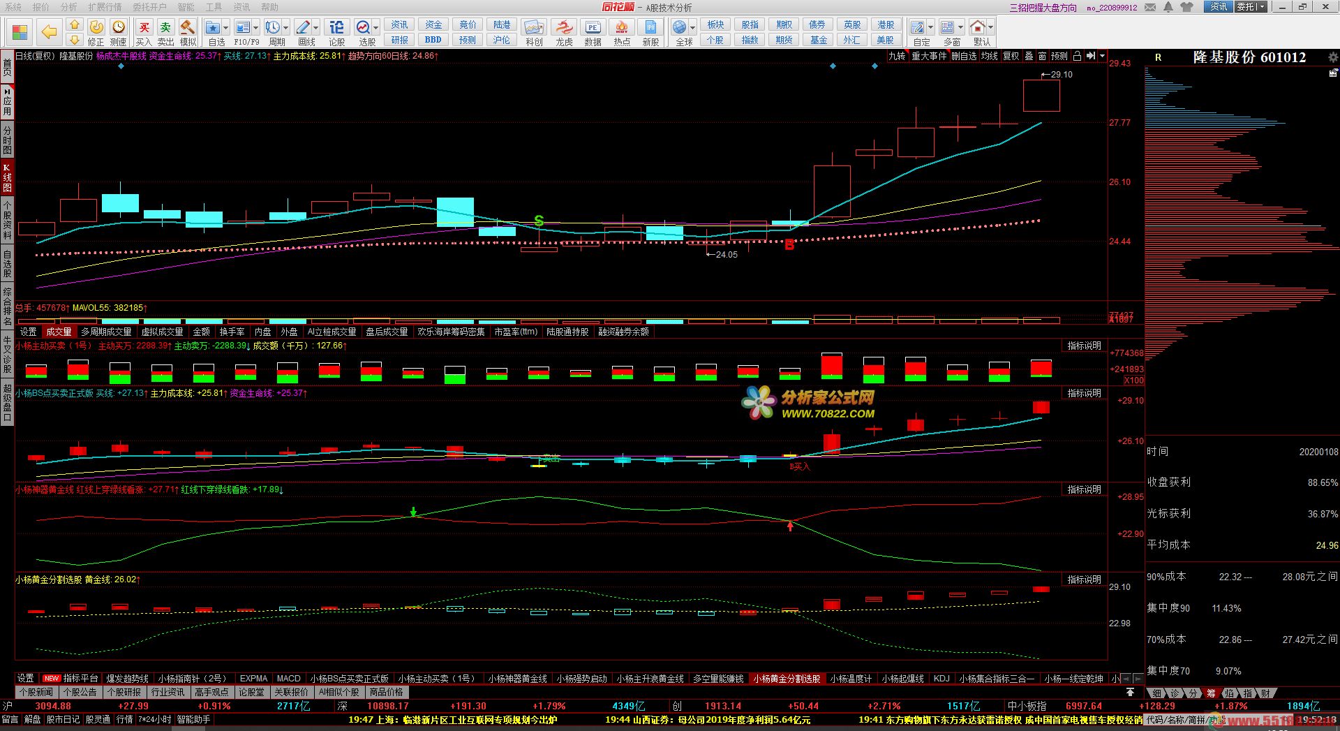 BS点 主动买卖 神器黄金线 黄金线分割 牛马买股组合公式源码: