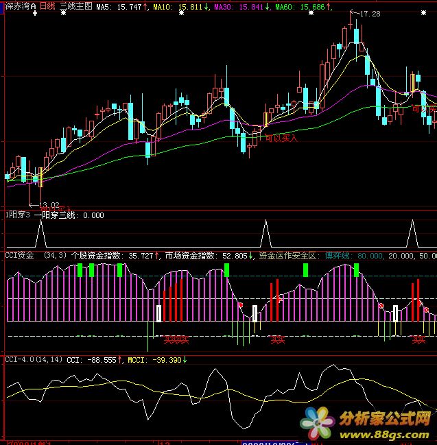 CCI市场资金资金 一阳穿三线选股指标[大智慧公式]