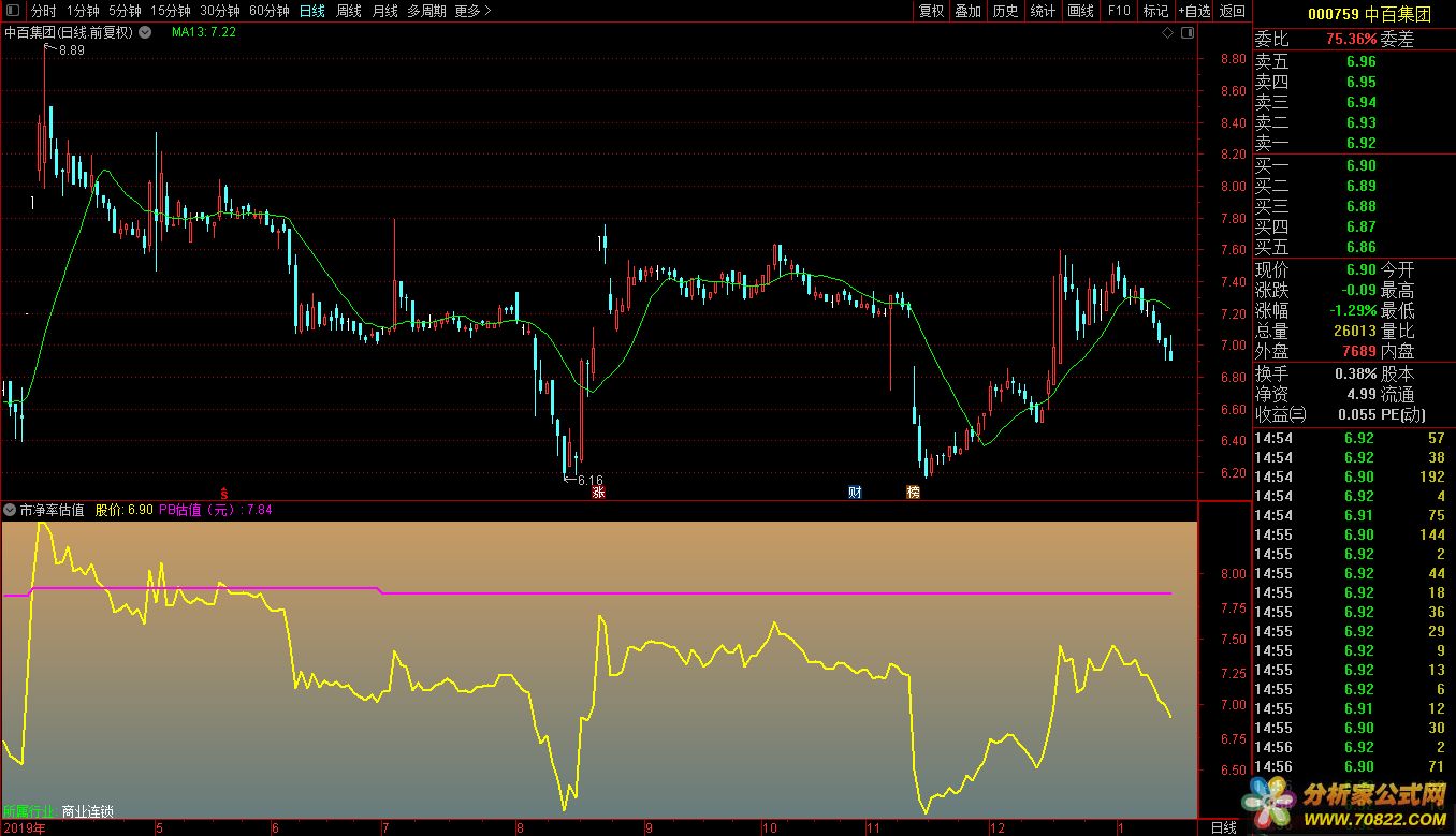 市净率估值(通达信公式 副图指标公式 公式、源码 测试图)详细解释[通达信公式]
