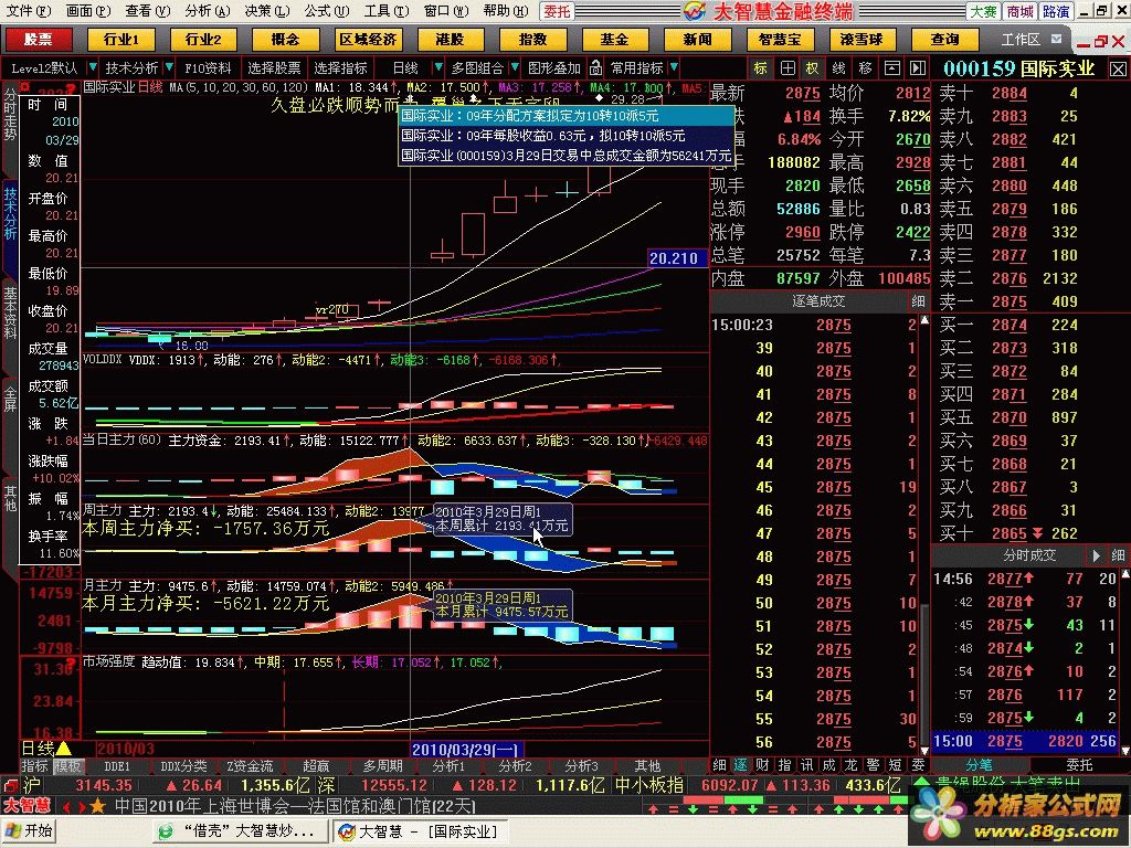 原创用成交量做的大单动向 有图不要疯狂的迷恋大单动向,他只是个传说,是庄家利用的工具,看下图有同步,有反向的,同步最好 反向的要结合均线系统十天线向上,坚决持股,反向000159,002185,同步002245.......指标加密无时间限制,好用请鼓励{程序化交易 www.cxh99.com }