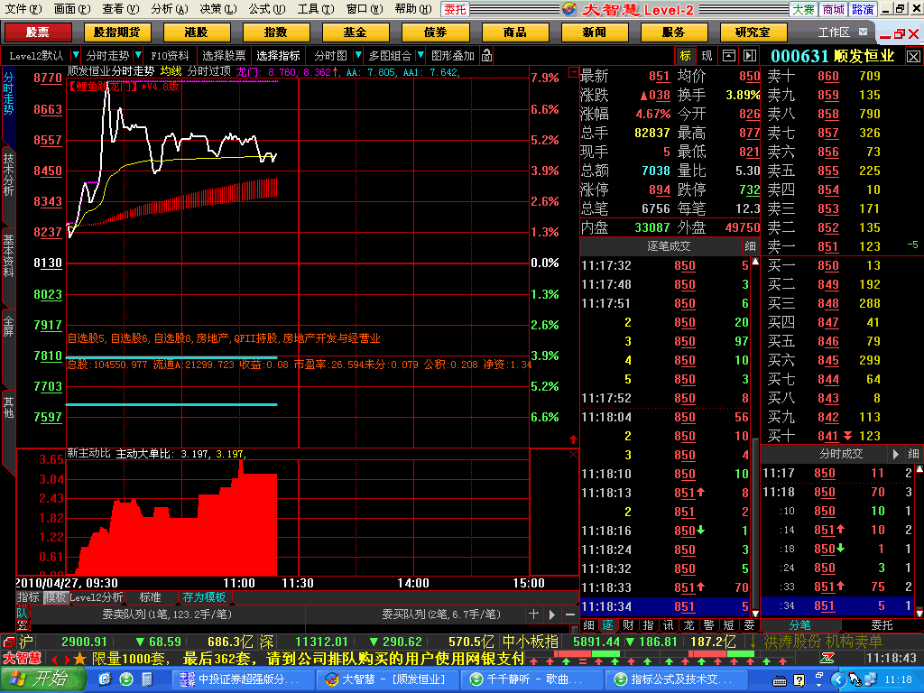 主动大单比公式 指标 选股 源码[大智慧公式]