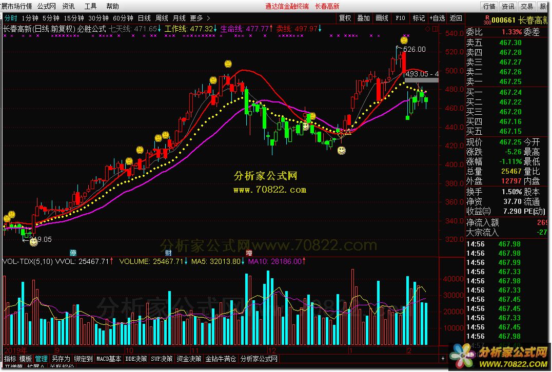 3. **生命线(MA)**:观察股价是否在生命线之上或之下,可以作为判断长期趋势的参考。